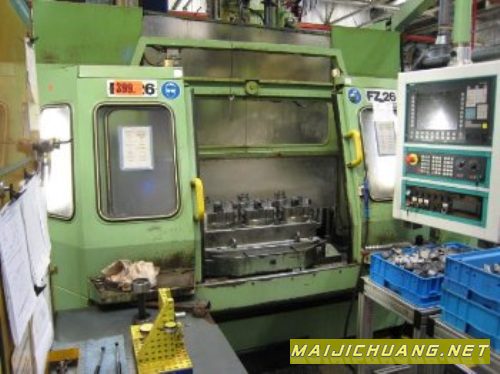 出售一台德国 Chiron FZ26W 双工作台卧加,年份:1993 (德国奔驰2010年翻新改造系统为西门子840D),行程: X–Y–Z 630–630–600 mm,最大功率: 81 kW (25% ED),主轴最大转速: 16.000 rpm,主轴最大扭矩:390 Nm 切-切时间: 2.7 秒,快速进给: 90 m/min,刀具数量: 45,刀柄规格: HSK 63,最大刀具重量:20 kg,最大刀具直径:250 mm,最大刀具长度: 425 mm,工作台:500x450mm